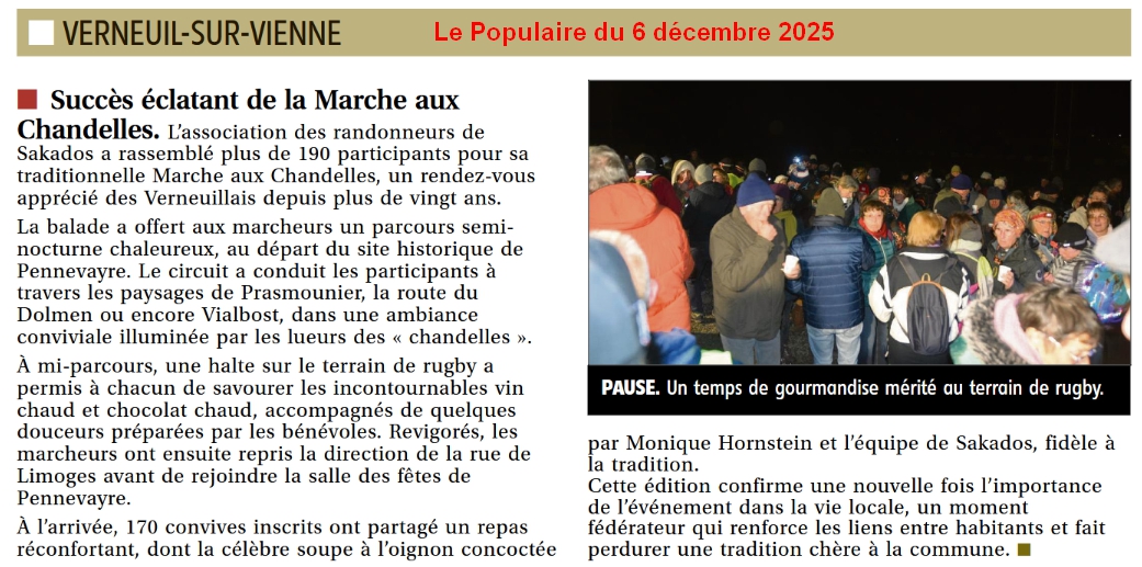 Dans le Populaire du 6 décembre 2025, marche aux chandelles du 22 novembre 2025